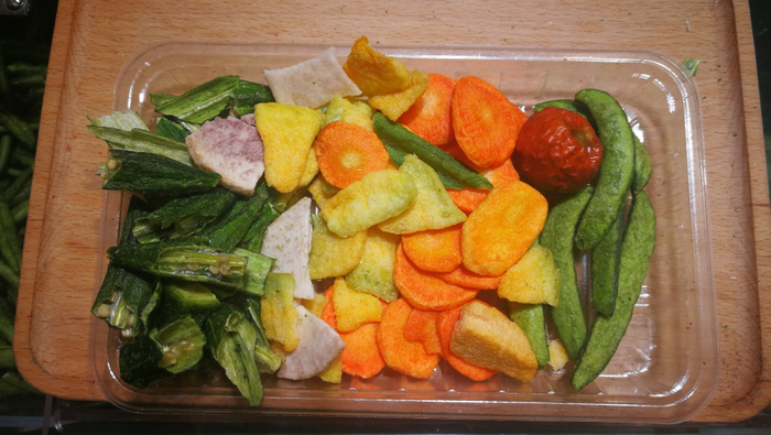 近日,新京报记者走访发现,一些商场售卖一种叫做冻干果蔬的零食,其种类丰富,有黄桃、苹果、胡萝卜、秋葵、豆角等等,前来购买的人不在少数。现场一位消费者表示,冻干果蔬口感酥脆,携带方便,当零食吃很不错。
