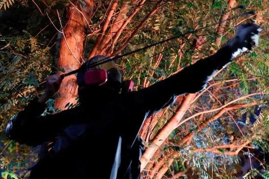 黑衣蒙面人手持弓箭(图源:港中大校园电台)