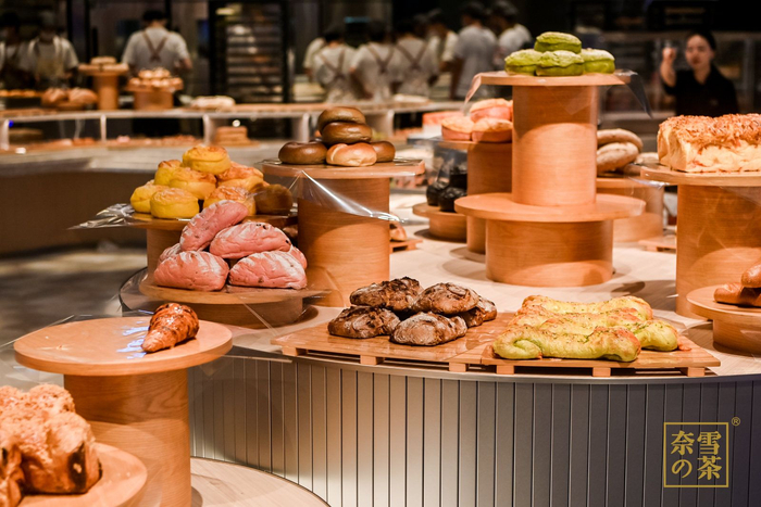 这场环球美味之旅的“导游”们是奈雪从世界各地请来的烘焙大师。“世界面包师协会”终身成就奖大师白创仁、2008年“安琪酵母杯”全国面包技术比赛金奖得主王熊平、2018路易乐斯福面包冠军得主李珮华等多位世界冠军大师带领百人团队,在开放式透明厨房里每日手工现做,新鲜出炉。