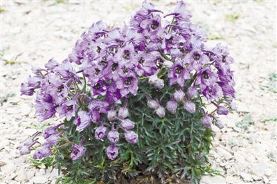 国家林业和草原局发布,近日,中国科学院西北高原生物研究所科研团队于本年度植物多样性和藏药材资源调查过程中,新发现白蓝翠雀花分布的新形式——蔚为壮观的白蓝翠雀花(Delphinium albocoeruleum)群落,其以带状分布于青海海西蒙古族藏族自治州德令哈市辖高寒荒漠区,分布平均海拔4300米,分布面积约5000公顷。大规模白蓝翠雀花群落的发现,对于研究该物种的群落演变与消长、藏药材资源的开发与利用乃至高寒荒漠区生态系统发展极具重要意义。