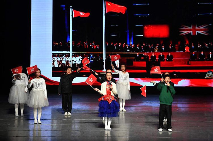 学生们演唱香港回归歌曲。
