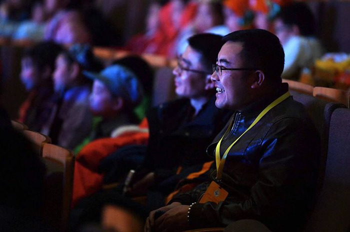 家长们在观看孩子们表演节目。
