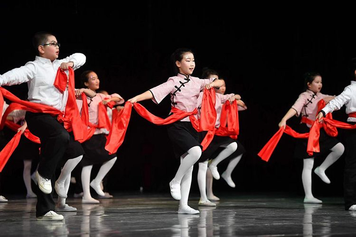 新京报讯 11月15日,海淀区花园村第二小学以“传承红色基因 逐梦多彩未来”为主题的红色剧目展演活动在民族剧院举行。展演活动为期两天,40个班级的1638名小演员,近3000名家长,以及112位花二小教师倾情投入40个剧目的展演中。