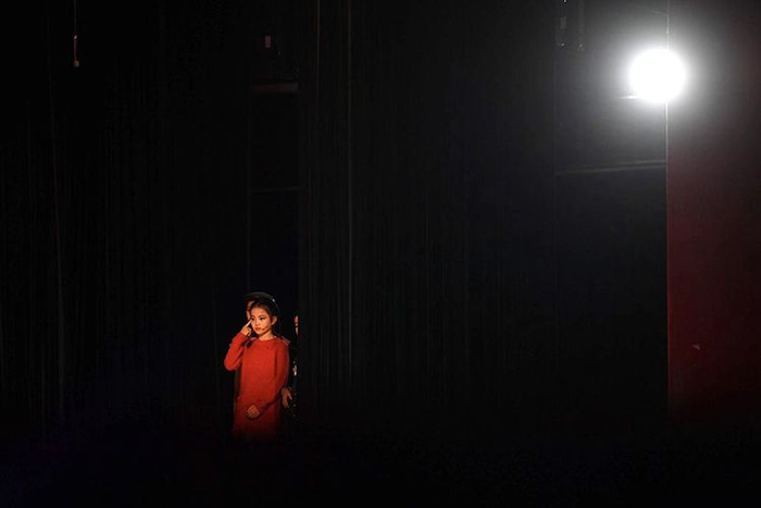 一位学生正在幕后候场。