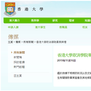 [环球网报 记者 尹艳辉]据多家港媒消息,香港大学今日(16日)在网页上宣布,取消学院原定于11月底至12月举行的毕业典礼。
