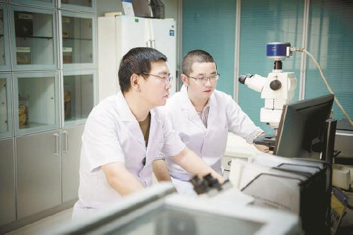 图为湖北省检察院的两名法医就一起送审案件的证据材料进行鉴定