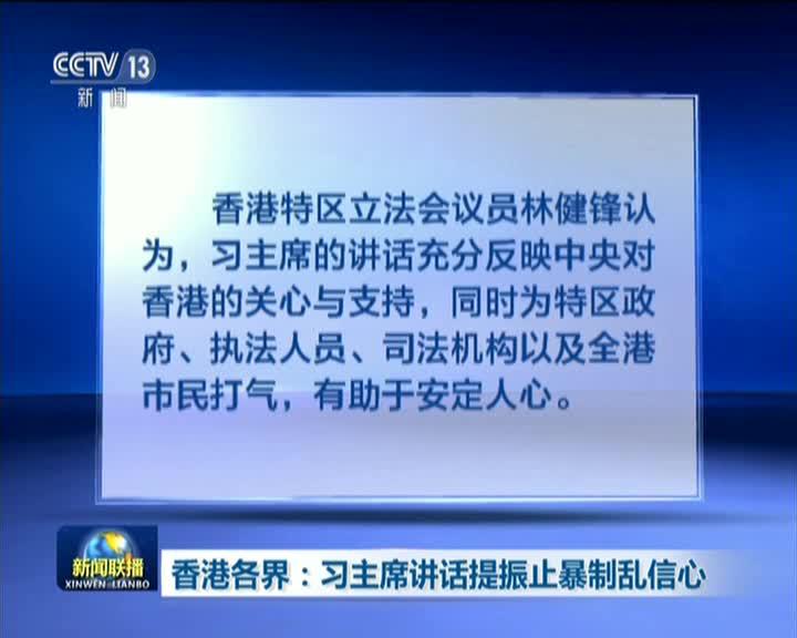《新闻联播》视频-香港各界:习主席讲话提振止暴制乱信心