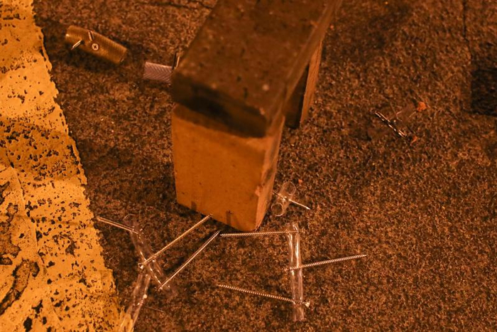 连接理工大学和红磡隧道收费站的畅运道行车天桥成为另一个火力点。入夜后,失控的年轻人们每人手持一个汽油瓶往桥中心的路障“冲锋”,路障的另一边是警察防线,密集的汽油弹竟直接点燃了一辆尝试靠近的警车。不远处,另一座人行天桥则数次起火,烧成暗红色的水泥块如熔岩般脱落,空旷的城市里不时回响起爆炸声和枪声,让人恍惚间觉得这不是香港,而是某个中东国家的战场。