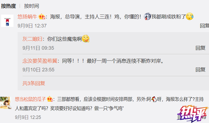 建议有心的网友去翻翻金鸡百花奖官微8月8日那条微博下的评论,你会以为进了主办方的工作群,那真是太有才了。有出主意的,有打气的,灯光舞美都要高大上,提名名单不要水,不要让演技派寒心,对主持人和评委人选也展开了热烈讨论,千言万语一句话:不能输给那匹马!