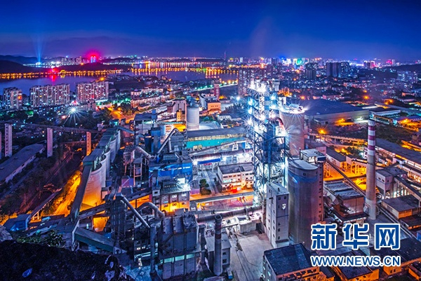 夜幕下的华新水泥厂。新华网发 冯燕军摄