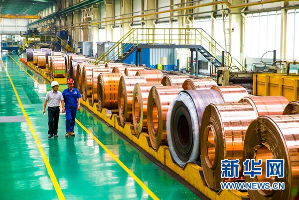 中铝华中铜业生产的金属铜箔。新华网发 何戈摄