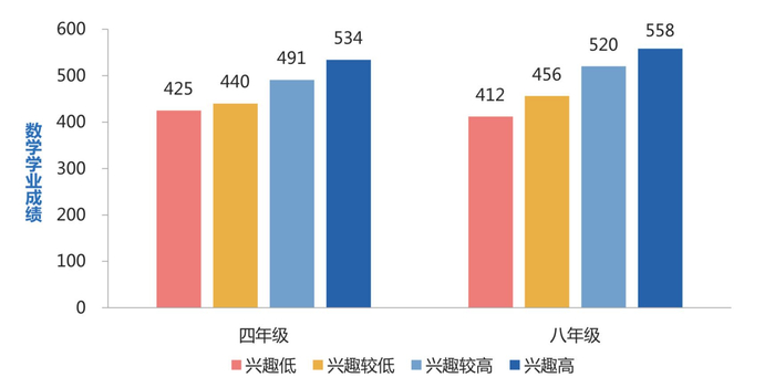 报告发现,四年级学生数学学习焦虑程度较低,八年级相对较高;四年级、八年级学生数学学习焦虑程度越高,数学学业成绩越低。