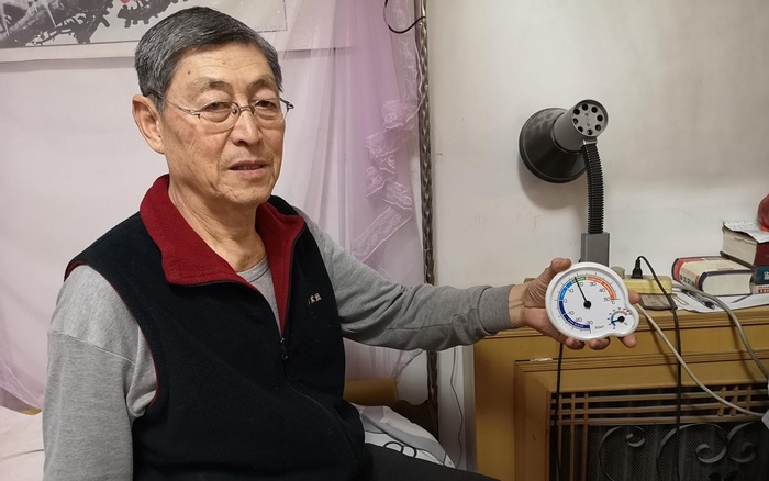 2层住户张大爷今年72岁,在小区居住了近20年,如今一家5人住在一起,家里属于集体供暖,一共6个暖气片。记者从门外走进客厅,明显感受到温热,当天的阳光从客厅窗户照射进来,也使得客厅内比较暖和。用室温计测得温度为21℃,达到供暖季18℃的室温标准。