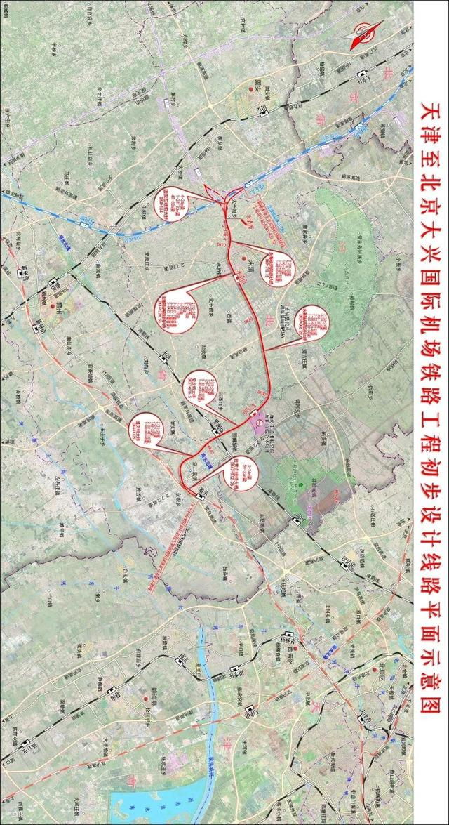 今年8月,天津至北京大兴国际机场铁路已第二次公布环境影响报告书。环评报告提到,线路东起天津西站,西至北京新机场站。其中,天津西至胜芳利用津保铁路,固安东至新机场利用京雄城际,新建线路起自胜芳,终至固安东站(不含),新建线路长度 47.36公里,设计时速250公里/小时。