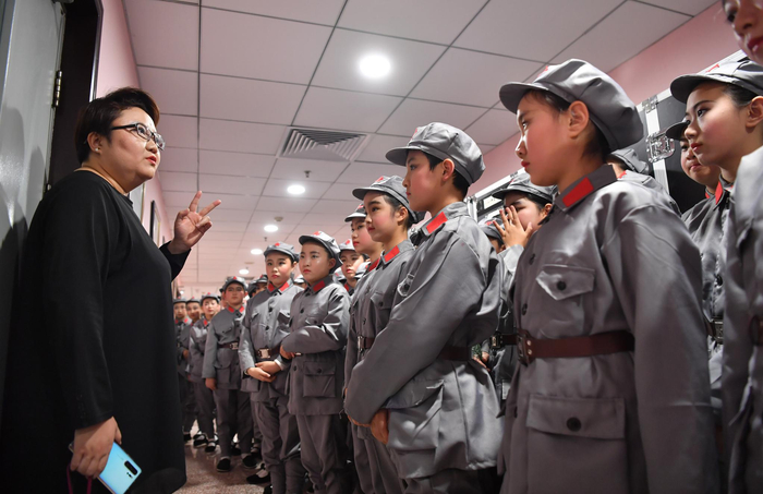 灯市口小学金帆合唱团的学生作为伴唱团队参与演出,伴唱歌曲包括“过雪山草地”“共产儿童团歌”“抬头望见北斗星”等11首曲目。 新京报记者 李木易 摄