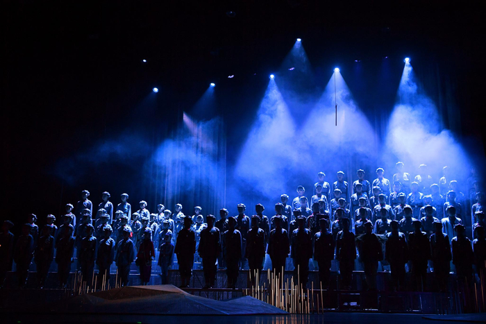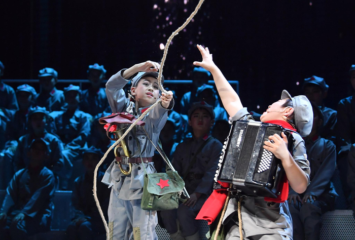 灯市口小学原创儿童剧“小红军”登上“庆祝中华人民共和国成立70周年校园戏剧系列活动暨2019青少年戏剧教育成果展演”开幕式的舞台。 新京报记者 李木易 摄