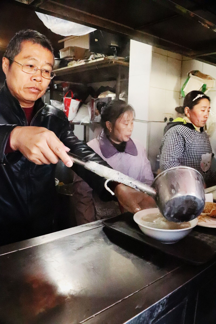 虽是小店,但是人气很旺。豆汁店早上5点半开门营业,天还没亮,就有老主顾上门了。尹三豆汁每天只营业半天,多少年来只做早餐生意,想吃上这口必须要赶早。