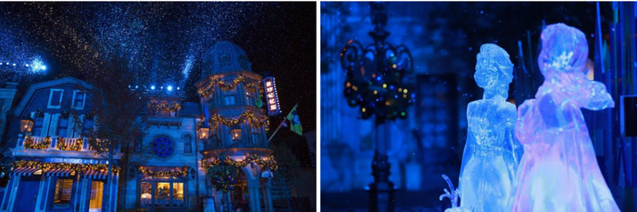 “冰雪奇缘”魔法将覆盖乐园各处,一系列主题“冰雕”将遍布米奇大街和奇想花园,为游客提供绝佳的合影点。乐园内的主题拍照背景墙也全新升级,从一个角度看,它是挂满传统节日装饰的阿伦戴尔王国的大门,从另一个角度则变身为被艾莎用魔法冰封的神奇景象。在这一季“冰雪奇缘”粉丝不能错过的乐园体验还包括由林间剧场的“冰雪奇缘:欢唱盛会”演出带来的《冰雪奇缘2》中的全新热门歌曲,穿上新装的艾莎和安娜将邀请大家一起欢唱。