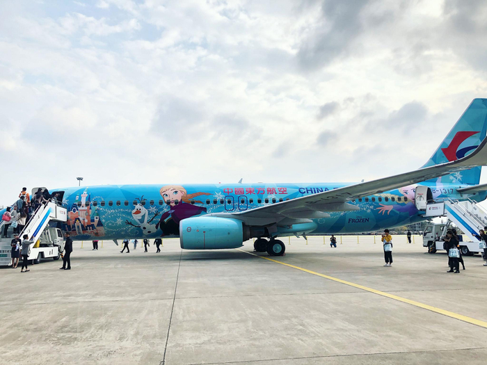 “冰雪·奇缘”号主题彩绘飞机。摄影:新京报记者 李妍