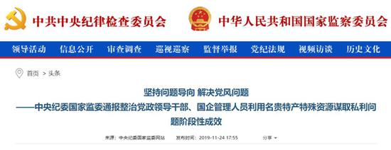 周日(11月24日),中央纪委国家监委通报整治党政领导干部、国企管理人员利用名贵特产特殊资源谋取私利问题阶段性成效。晚上,《新闻联播》对该通报也作了报道。