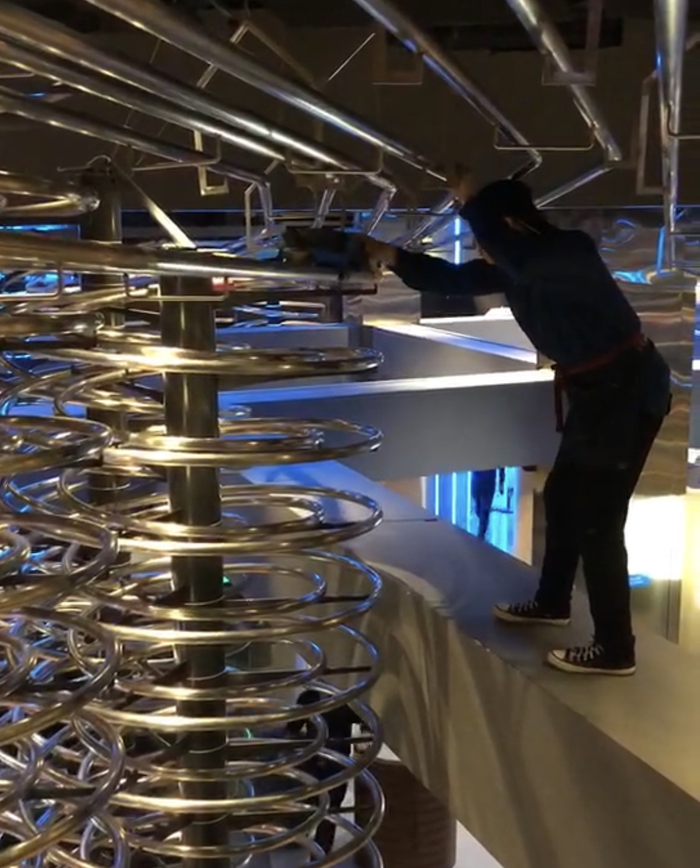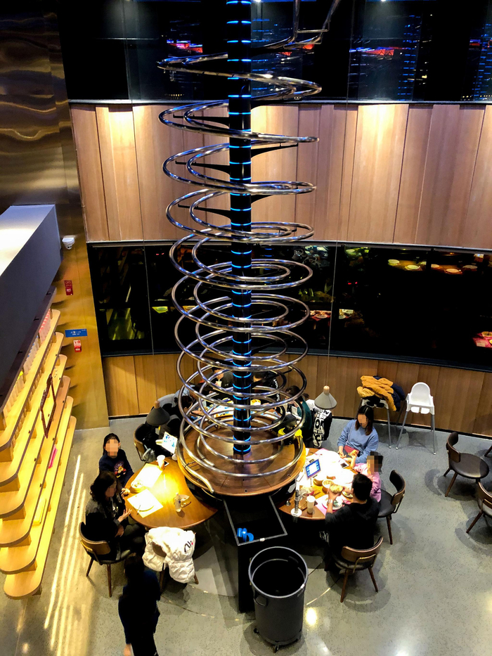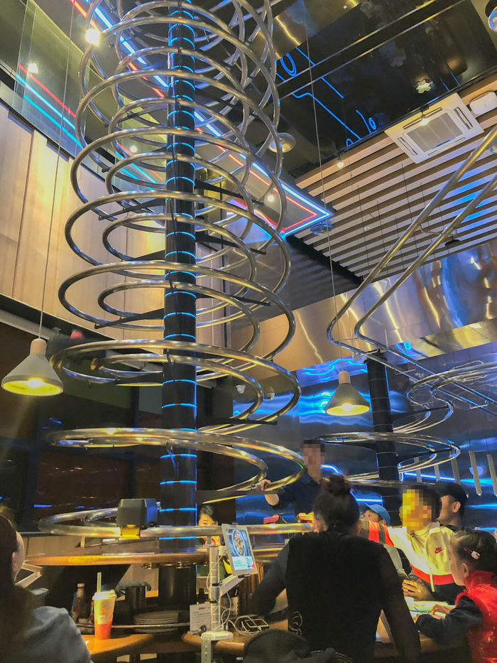 △ 失重餐厅世纪金源店为顾客上菜的双螺旋轨道。