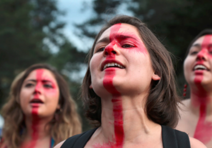 ,世界各地将举行为期16天的集会活动,但活动从11月23日开始,便在全球范围开展——意大利蒙特西托里奥宫被打上红色的光,巴黎女性手举紫色标牌上街游行抗议暴力,布鲁塞尔的街头摆着象征女性侵害的红色高跟鞋装置,厄瓜多尔女性在面部画上鲜红的十字……