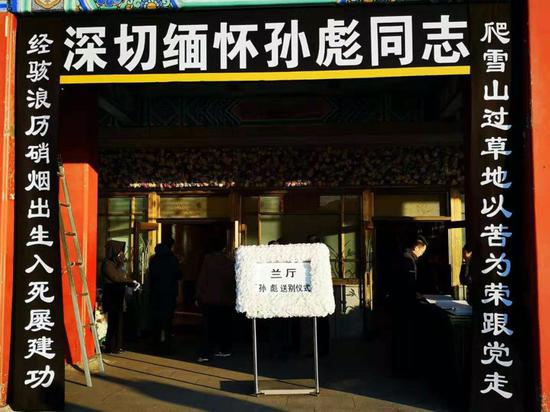 “爬雪山过草地以苦为荣跟党走,经骇浪历硝烟出生入死屡建功”,挽幛黑底白字,为孙彪老人光荣的一生、战斗的一生写下注解。