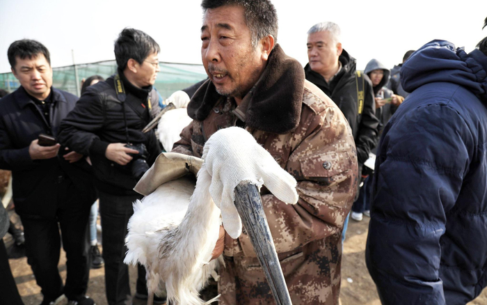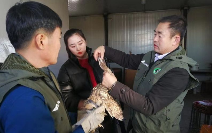 吉林镇赉的志愿者在检查受伤的候鸟。受访者供图