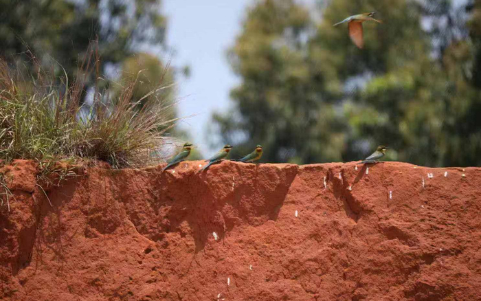 被誉为“最美候鸟”之一的栗喉蜂虎,在福建晋江沿海繁殖栖息。受访者供图