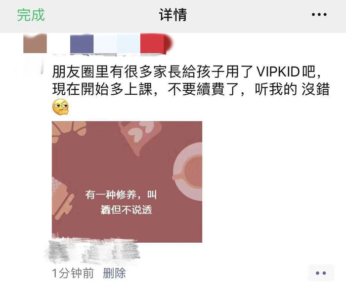 “重要的事情说三遍,你们有在给孩子学VIPKID的吗,不要再续费了。收到可靠消息,要破产了。”11月28日,一则关于VIPKID破产的信息在微信群及朋友圈传播。多位网友向新京报记者提供的截图显示,消息发布者来自多方,意思大致相同——VIPKID将要破产,提醒家长停止给孩子续费。一位提供截图的家长称,消息是从家长微信群看到的,不清楚具体来源。