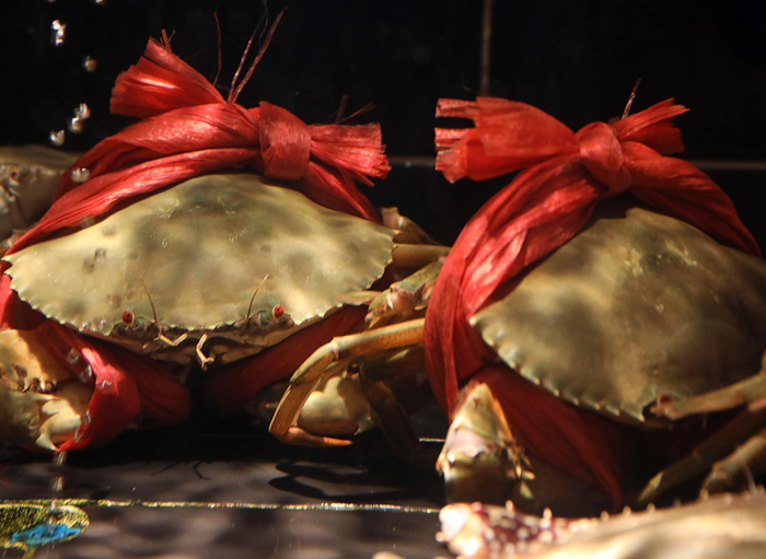尤其是海鲜区,简直可以被称之为“新荣记水族馆”:各种海鲜的鲜活度,超出北京任何一家超市水产区,甚至与水族馆的区别,大概也只在于螃蟹是被绑着的,鲍参翅肚的多样,也让人不由地想起《满汉全席》中的片段。