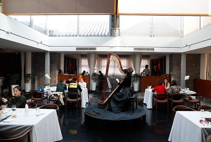 即使是中午的用餐高峰时段,依然可以听到中庭区域悠扬婉转的古筝,这样的用餐环境让一向喜欢热闹的人,也不由自觉压低了推杯换盏的声音。