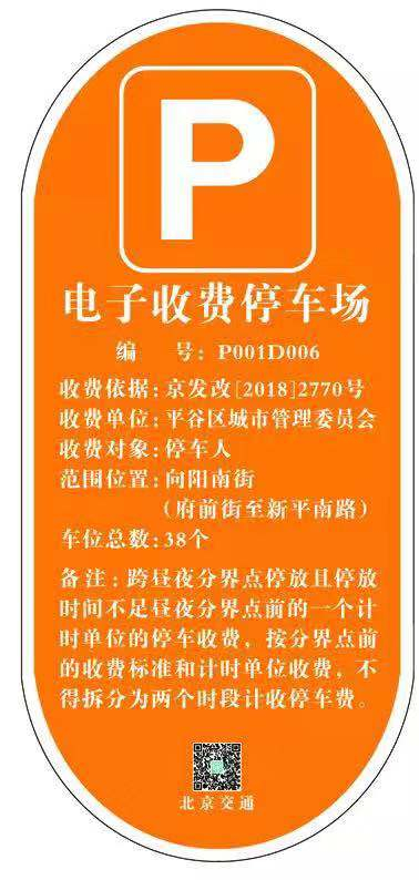 经过前期合理设计规划并广泛征求意见,平谷区在“四横两纵”的分布范围内,重新施划道路停车位并实行电子收费,共涉及的870个。电子收费车位在道路的起始位置设有橙色明码标价牌。停车人可以通过“北京交通”APP“查找车位”功能,查看全市电子收费停车位,并可获取车位实时占用信息。