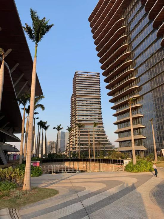 11月初,记者现场看到,“厦门中心”5栋高楼均已建成,外观宏伟大气,独特的“山”“海”对话设计十分吸睛,层层的挑檐似层层船帆,体现出“海”的气势;层层退台则如闽南山丘,梯田般层层叠叠,提供了天然的观海平台。