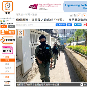 此前,为增加警方的人手和力量,近百名惩教署人员以非全职形式被借调作特务警察,负责守卫部分政府处所,职责包括防暴、处理突发事件等。这些惩教署人员来自被称为惩教“飞虎队”的“区域应变队”,训练有素。