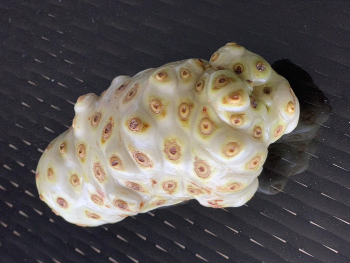 诺尼果不仅果子长相特别,花也非常独特,它和菠萝、桑果、无花果一样,是一种聚花果,由整个花序发育成果实,诺尼果成熟后逐渐变得软软的,并且开始散发出浓浓的发酵味。