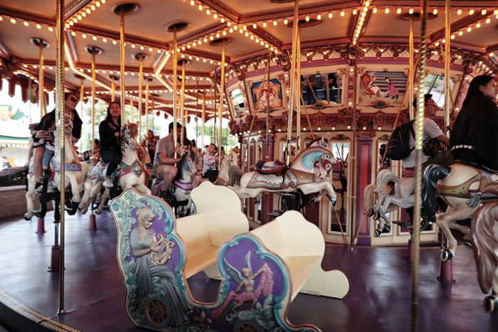 旋转木马空着一些座位。