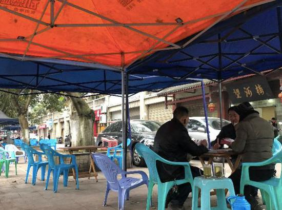 重庆大足区龙水镇滨江路,当地茶楼“一条街”,尹光德团伙曾在望河楼背后开设赌场。新京报记者向凯 摄