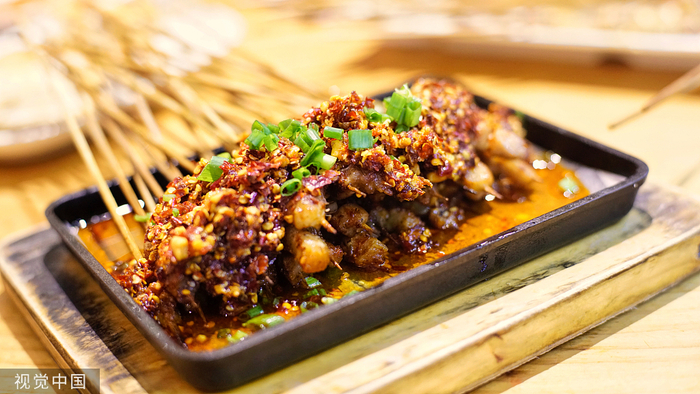 五香红薯烤肉串,这是一种红薯的重口味吃法。爱撸串的你,一定不能错过咸甜麻辣的红薯烤串,红薯和烤肉结合,是意想不到的美味。