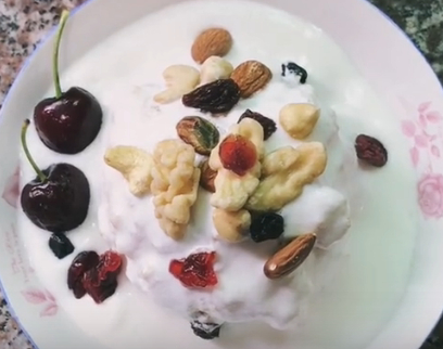 食料:红薯、酸奶、各种果干和坚果(少许)