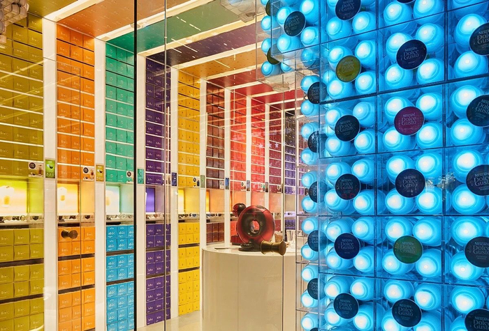 记者了解到,SODA建筑师事务所为雀巢多趣酷思(Nescafe Dolce Gusto)打造的全球首家概念店,通过多媒体技术与空间功能的全新融合,让未来的商业空间步入智能终端。其中,多媒体“像素大门”和“隐形屏幕”别具一格。