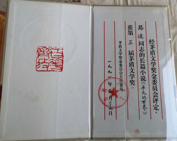 1991年3月,《平凡的世界》获中国第三届茅盾文学奖!那一年,他42岁。