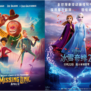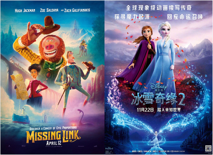 《遗失的环节》和《冰雪奇缘2》海报。