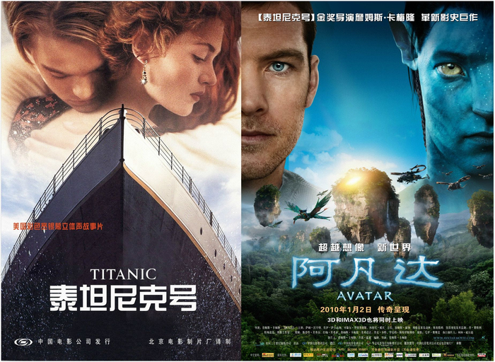 《泰坦尼克号》和《阿凡达》的电影海报,风格、题材迥异。