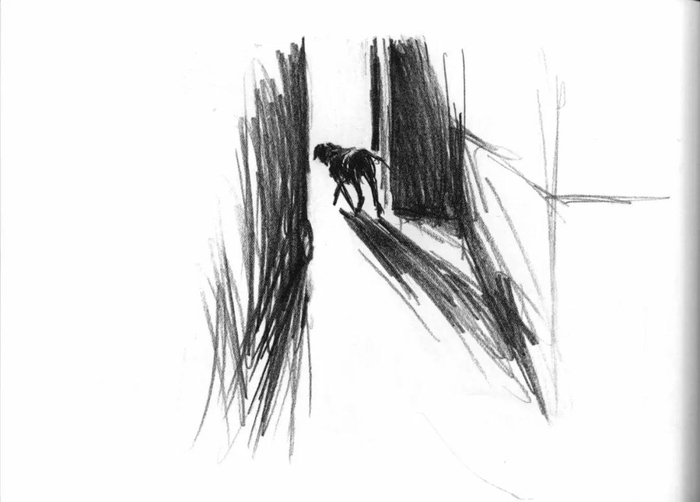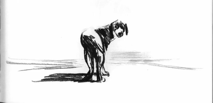 比利时绘本画家嘉贝利·文生绘《流浪狗之歌》(版本: 湖北美术出版社·海豚传媒,2010年10月)插图。