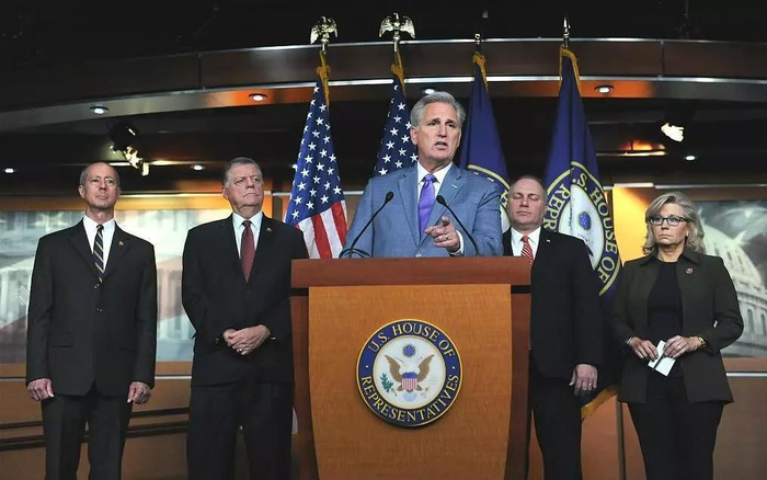 当地时间10月29日,美共和党众议院领袖谴责民主党就弹劾调查程序举行投票。图/视觉中国