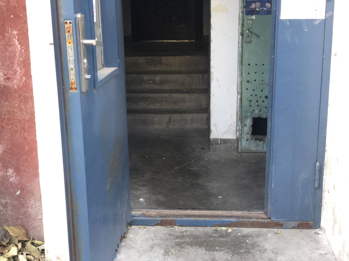 复康南里小区,一层住户进门也要爬4级楼梯。摄影/新京报记者 周依