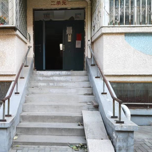 月坛北街25号院35号楼,二单元入口处的楼梯有9级。摄影/新京报记者 黄哲程