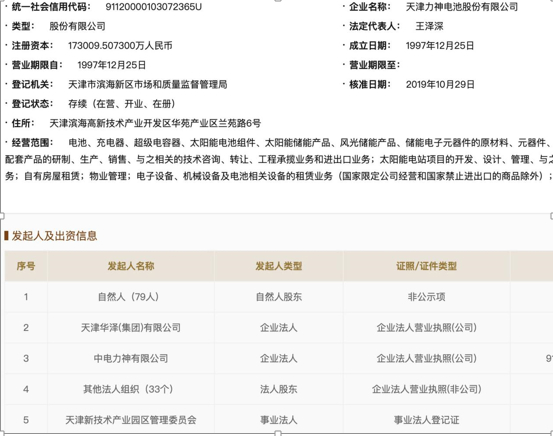 工商信息显示,天津力神工商股东达到8个,其中,中电力神集团有限公司(以下简称“中电力神”)持股比例17.80%。