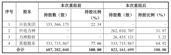 本次重组前,中电力神未持有ST嘉陵任何股份。本次重组中电力神通过无偿划转方式取得兵装集团划入股份1.53亿股,中电力神及天津力神以资产认购上市公司本次新发行股份 1.34亿股,本次重组实施完成后中电力神及其一致行动人合计持有上市公司股份比例将达到35.08%,成为上市公司的第一大股东。
